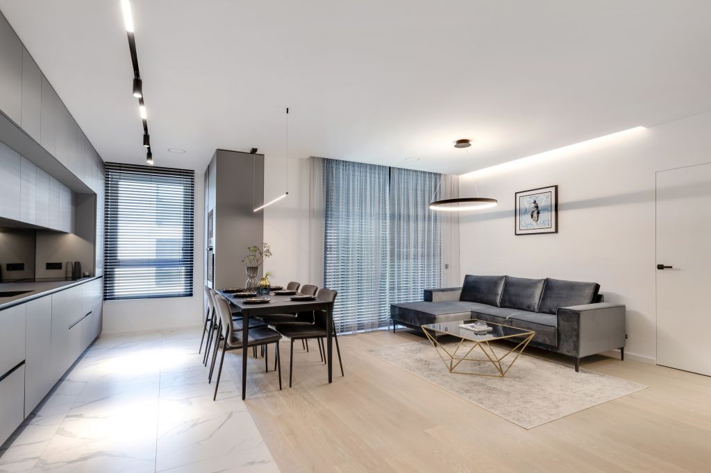 70 kv.m buto interjeras Vilniuje. Moderni klasika